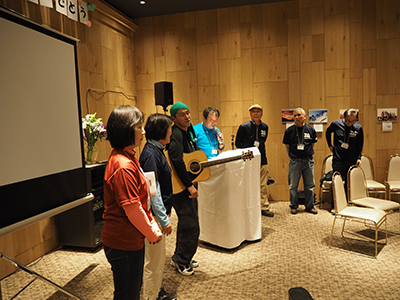 来賓として、立教大学コミュニティー福祉学部の濁川教授、視覚障害者登山の先駆者であり、六つ星山の会の設立者である松本氏に参加していただき、スピーチをいただいた後、和やかにひとときを共に過ごすことができました。
