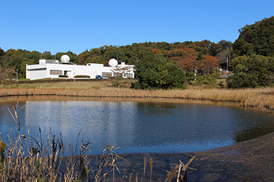| パラボラアンテナ | 地球観測センター内の池と第2運用棟 |