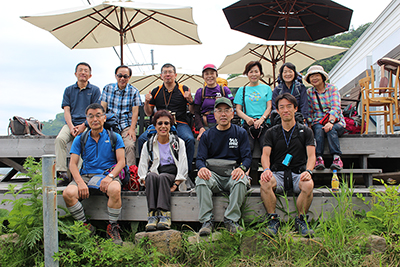 | 4日目の朝、国民宿舎の方と記念写真! | 国民宿舎の方から撮っていただいた集合写真。 |