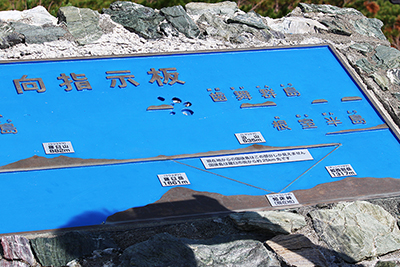 | 国後島の泊山 | 知床峠から見える国後島の位置を示した方向指示板 |
