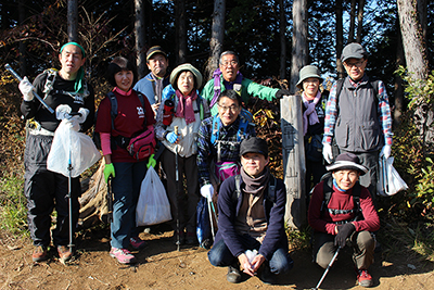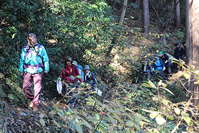 | ごみを拾うSさん。(Iさん撮影) | 大洞山に向けて登る。(Iさん撮影) |
