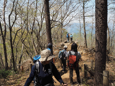 | 惣岳山で休憩するCさんとIさん。 | 整備された登山道を歩く。 |