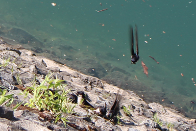 | 小河内ダムに巣を作るイワツバメ | 新緑が目に鮮やか |