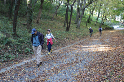 | 落ち葉の道を歩く。 | 再び山道を歩く。 |
