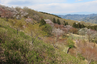 | 桜の咲く林 | 多くの桜が咲く山頂付近 |