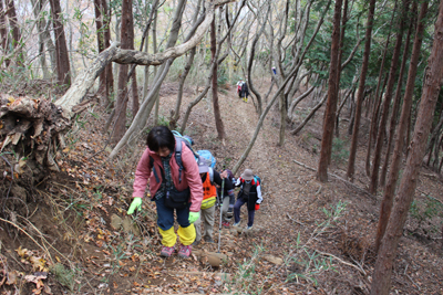 | 念仏山を過ぎ、善波峠に向かう。 | 歩きやすい道を歩く。 |