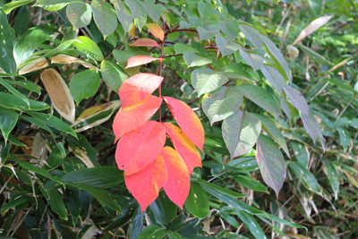 | 薬師岳上空に青空も見えるようになってきた | きれいに紅葉したウルシ |
