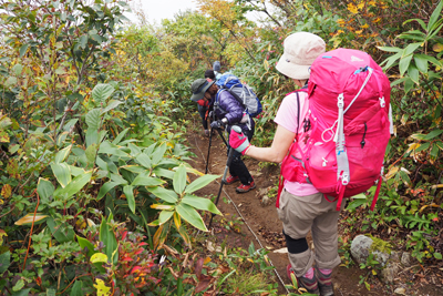 | 滑りやすい足下に注意。 | このあたりは紅葉も。 |