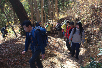 | 景信山山頂にて。 | 雑木林を下る。 |