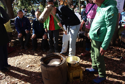 | 注文していた餅つきの始まり。 | まずは潰しから。(Sさん撮影) |