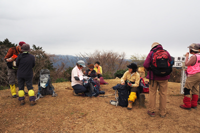 | 発端丈山に到着。 | 展望の良い発端丈山の山頂でくつろぐ。(Iさん撮影) |